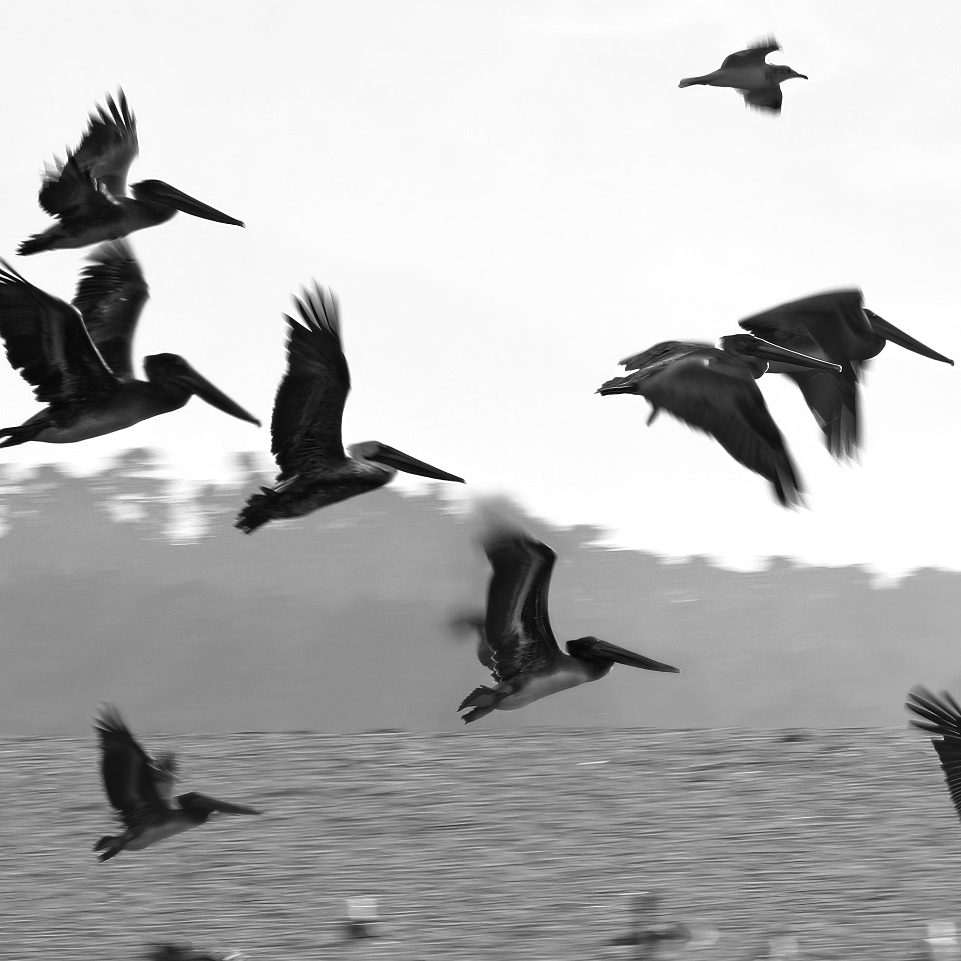 Description: Dramatic landscape of variety of birds in flight in coastal California.