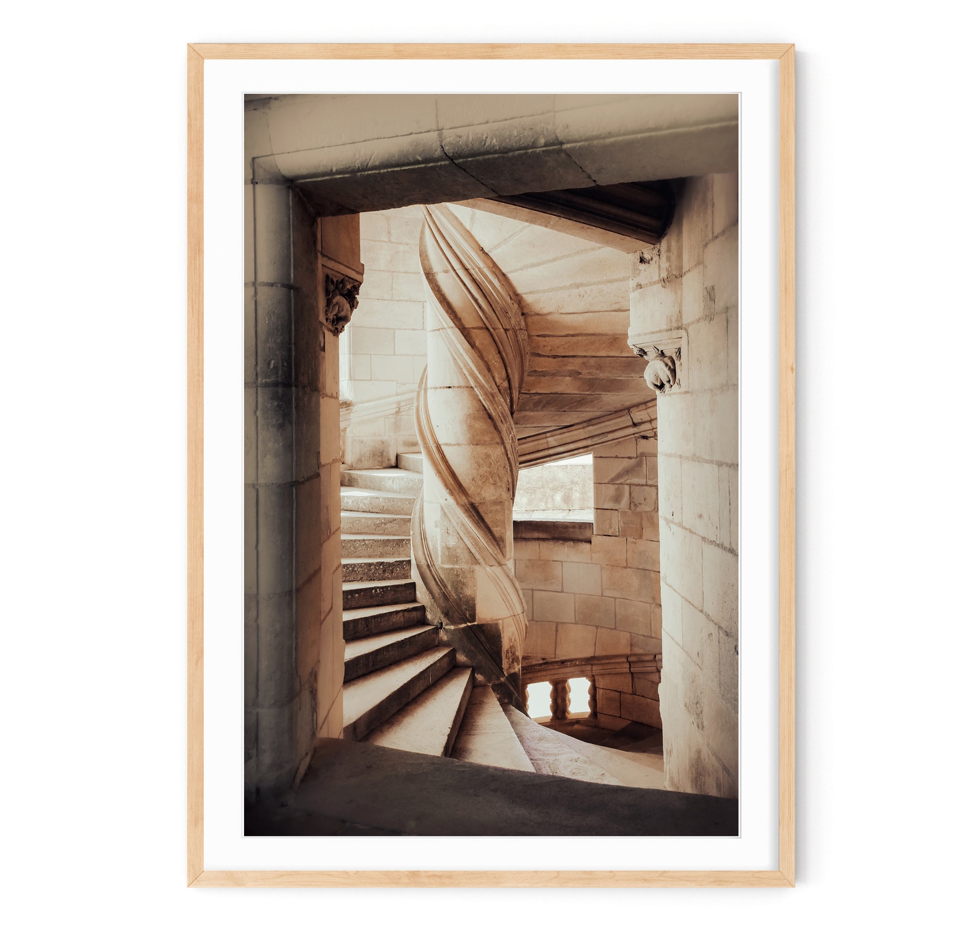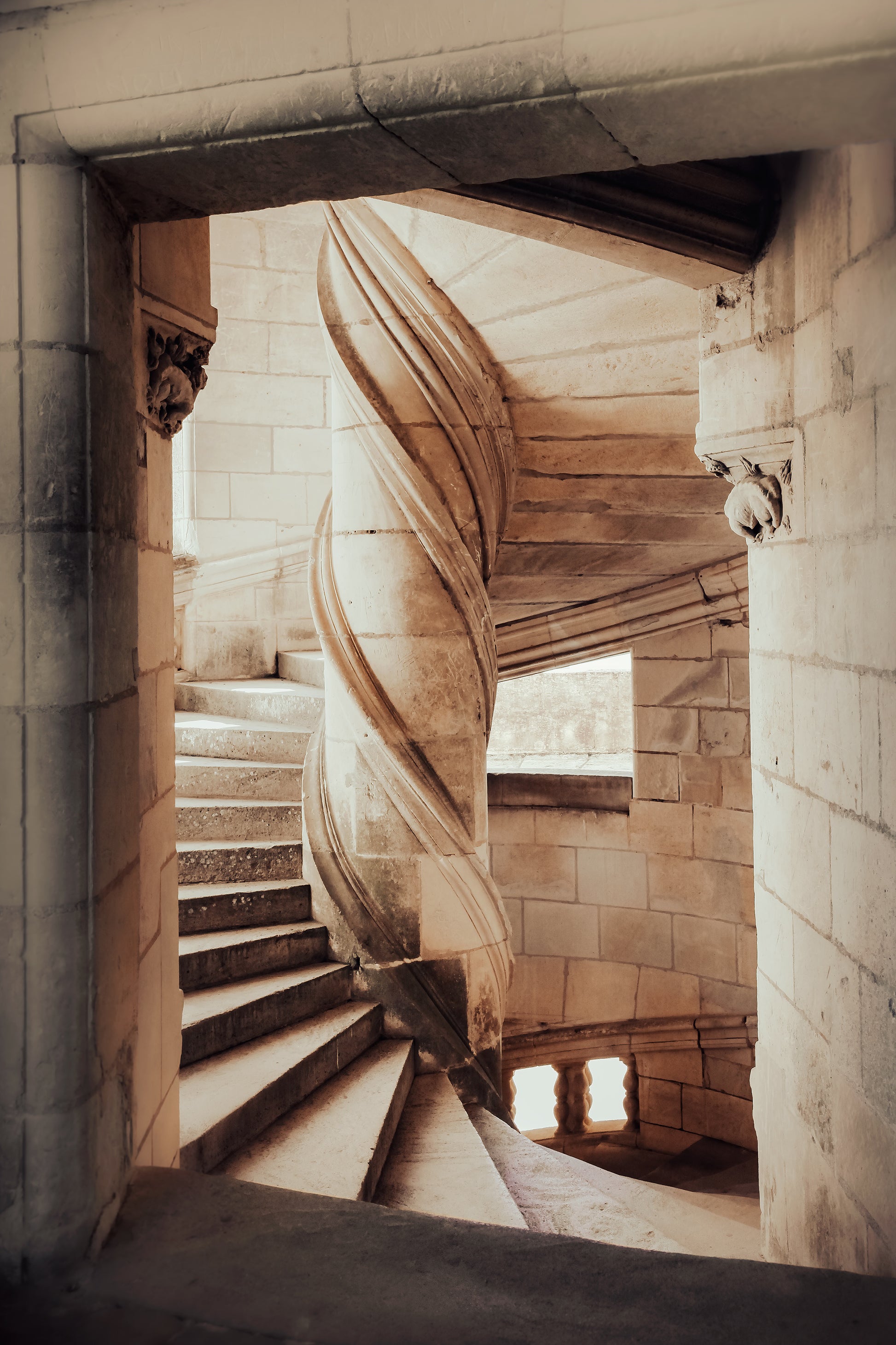 Description: Architectural scene of Leonardo da Vinci designed staircase in France.