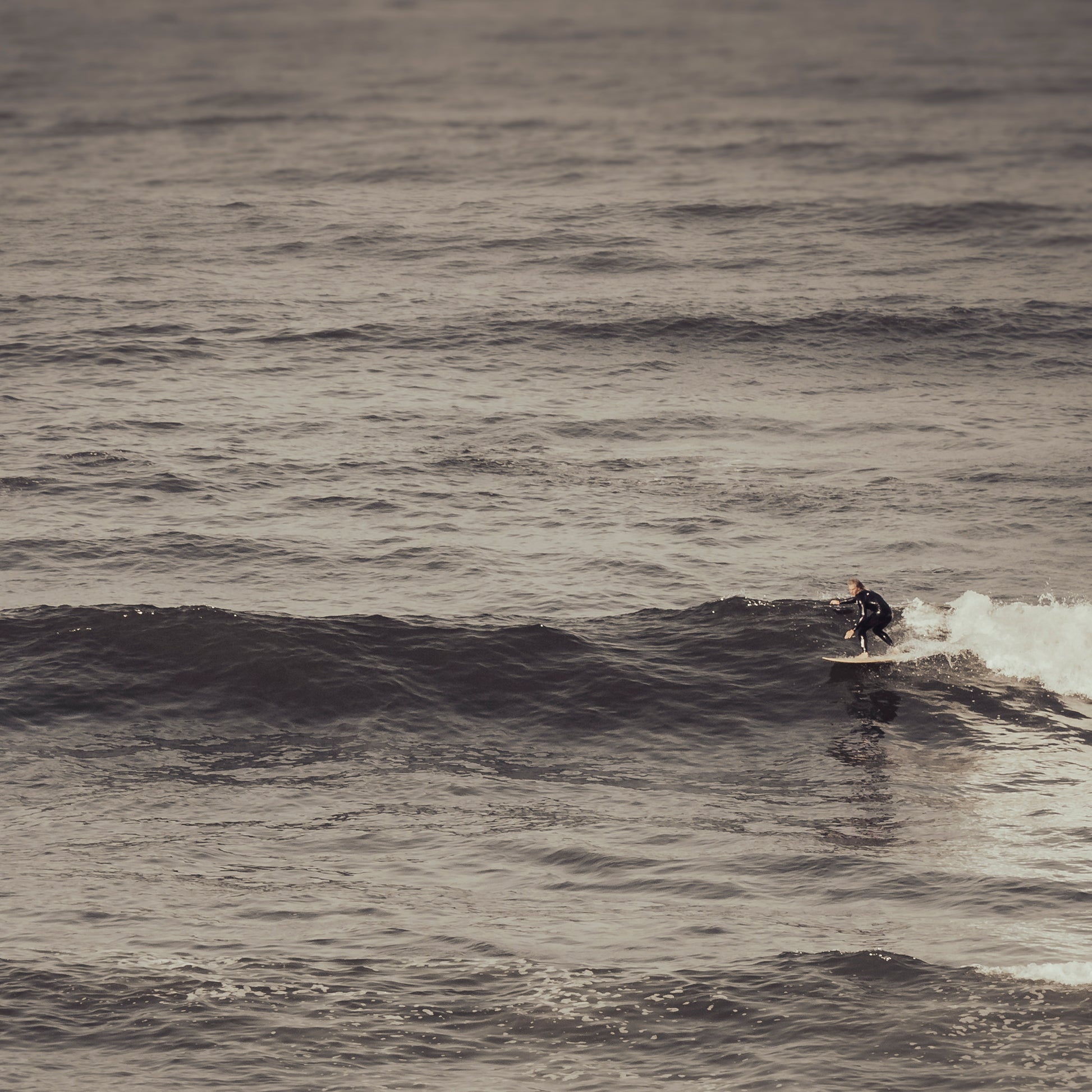Description: Dramatic landscape with lone surfer in Malibu, California.