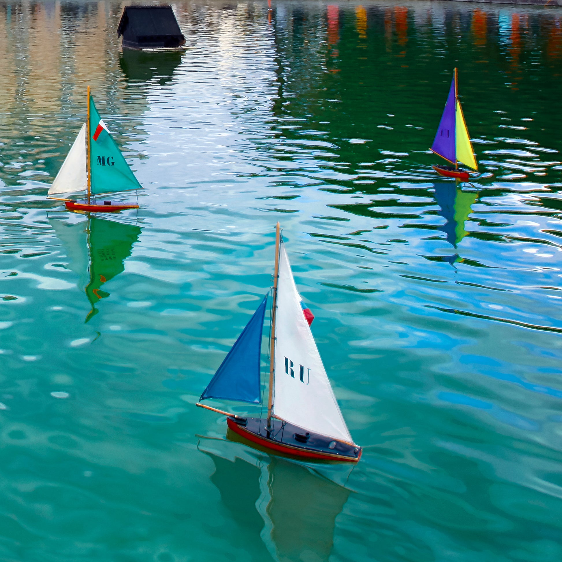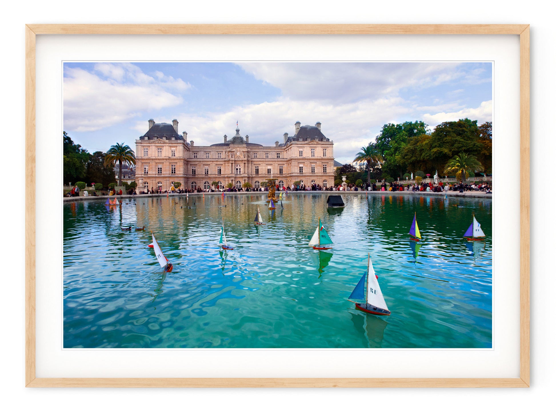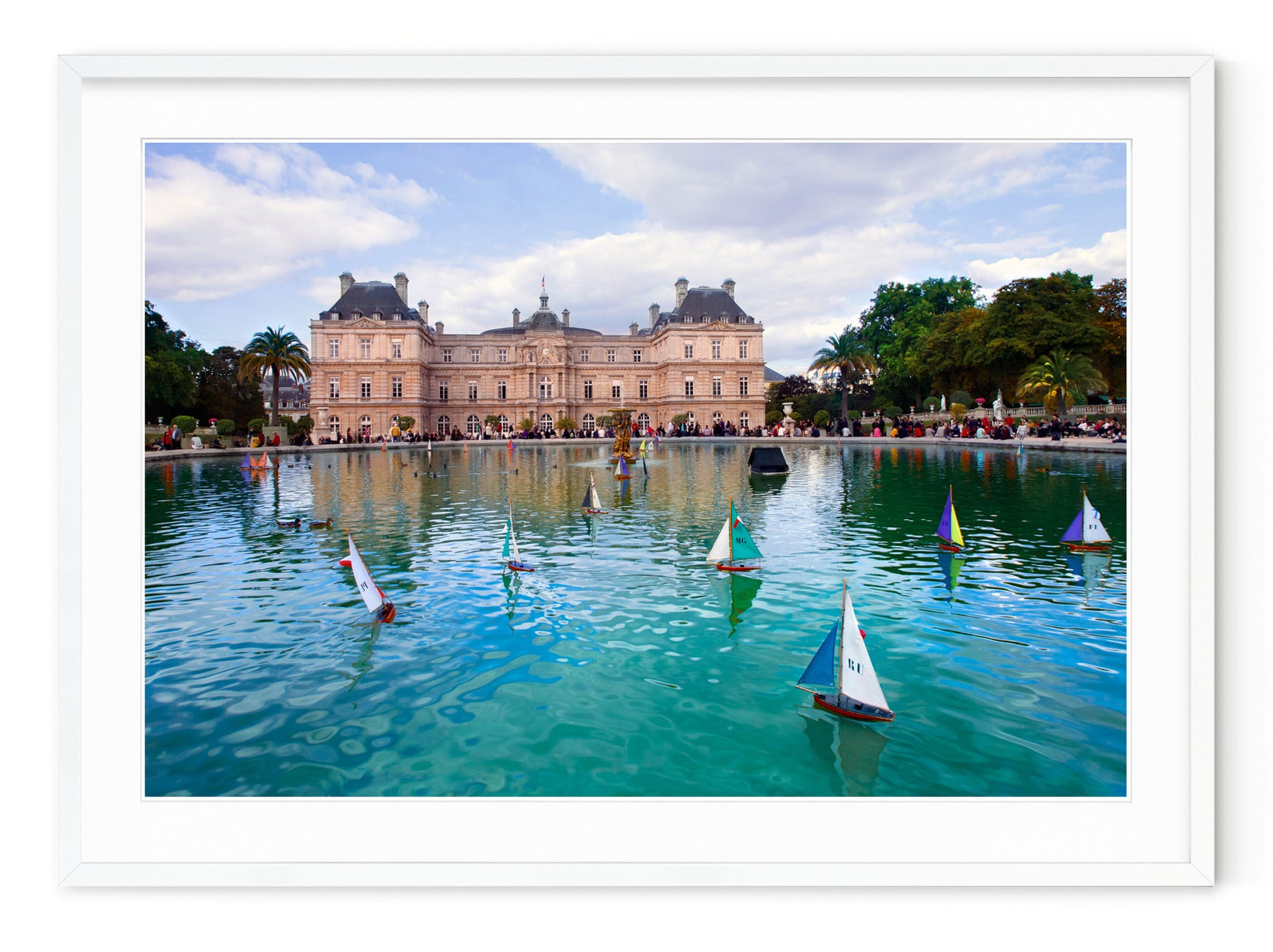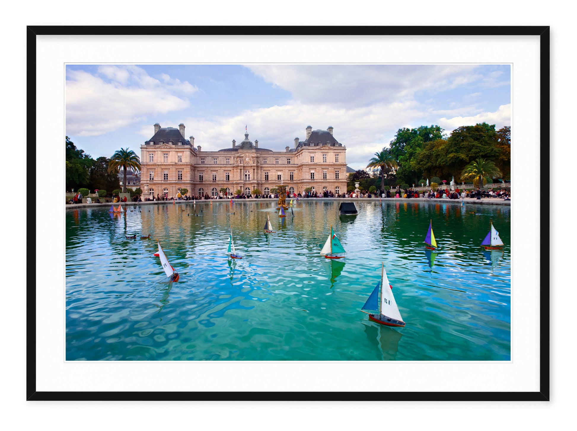 Description: Parisians sail remote control boats on the pond in Luxembourg Gardens.