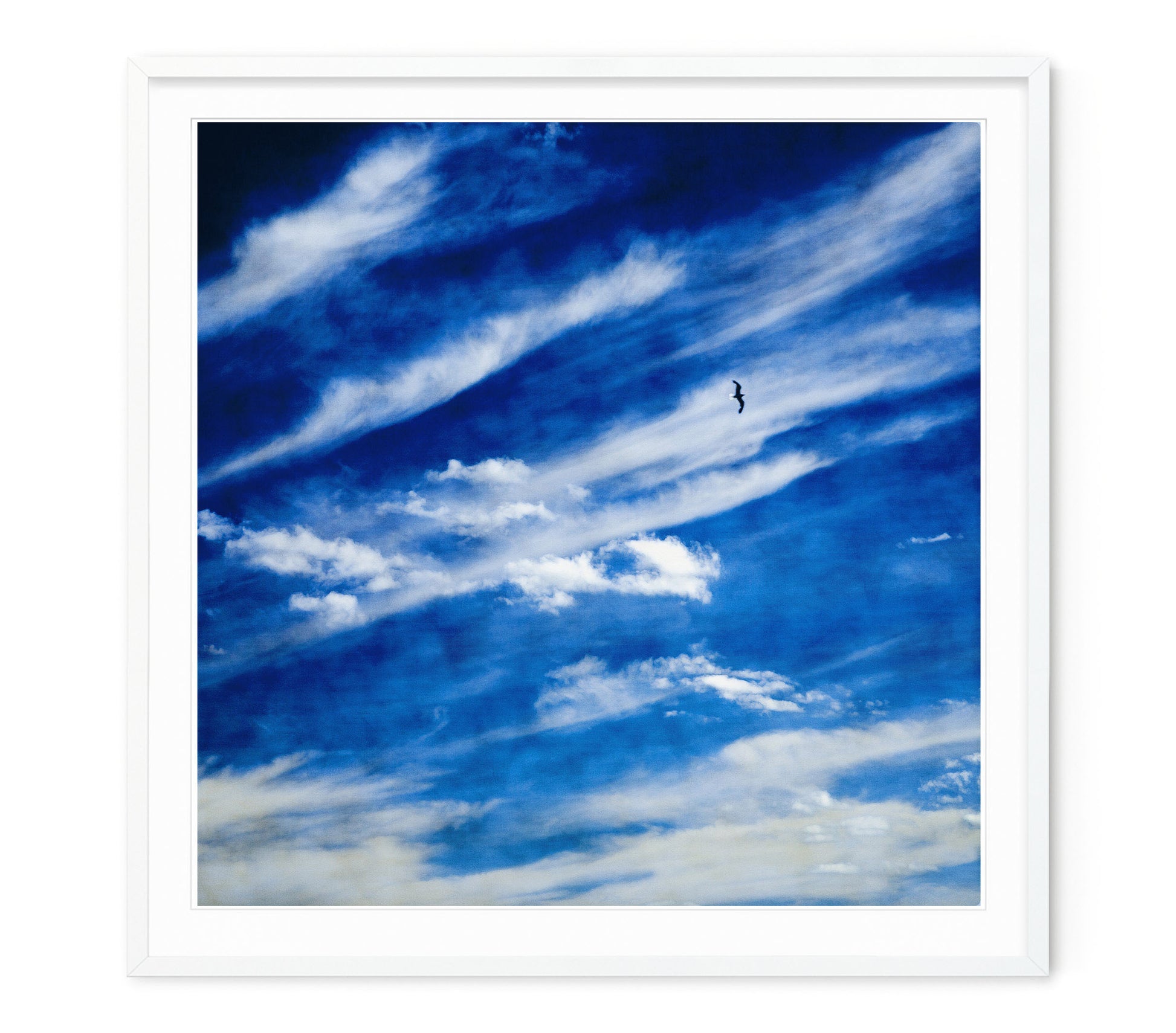 Description: Saturated blue sky of clouds with painting effect that resembles a traditional Japanese tie dye cloth.