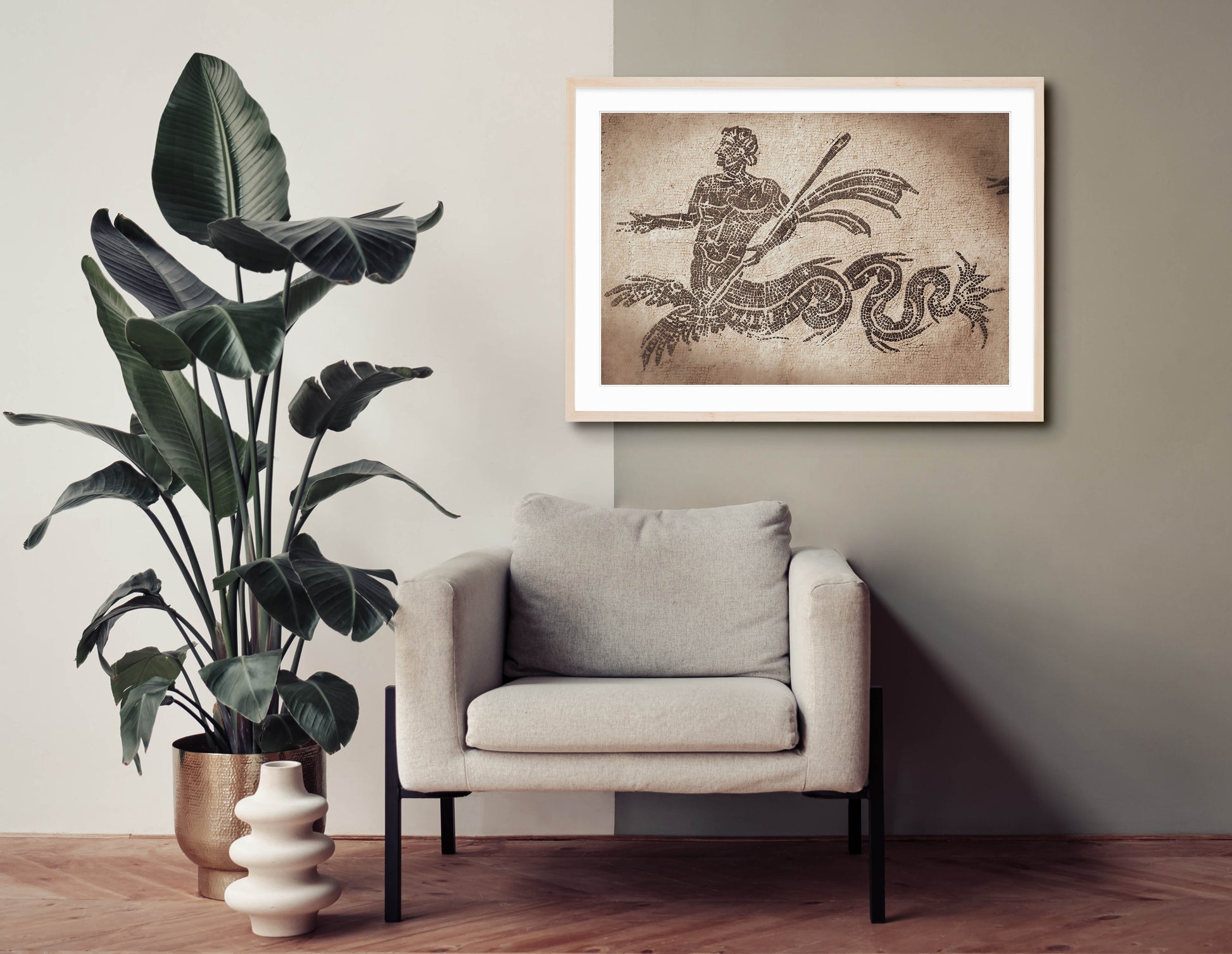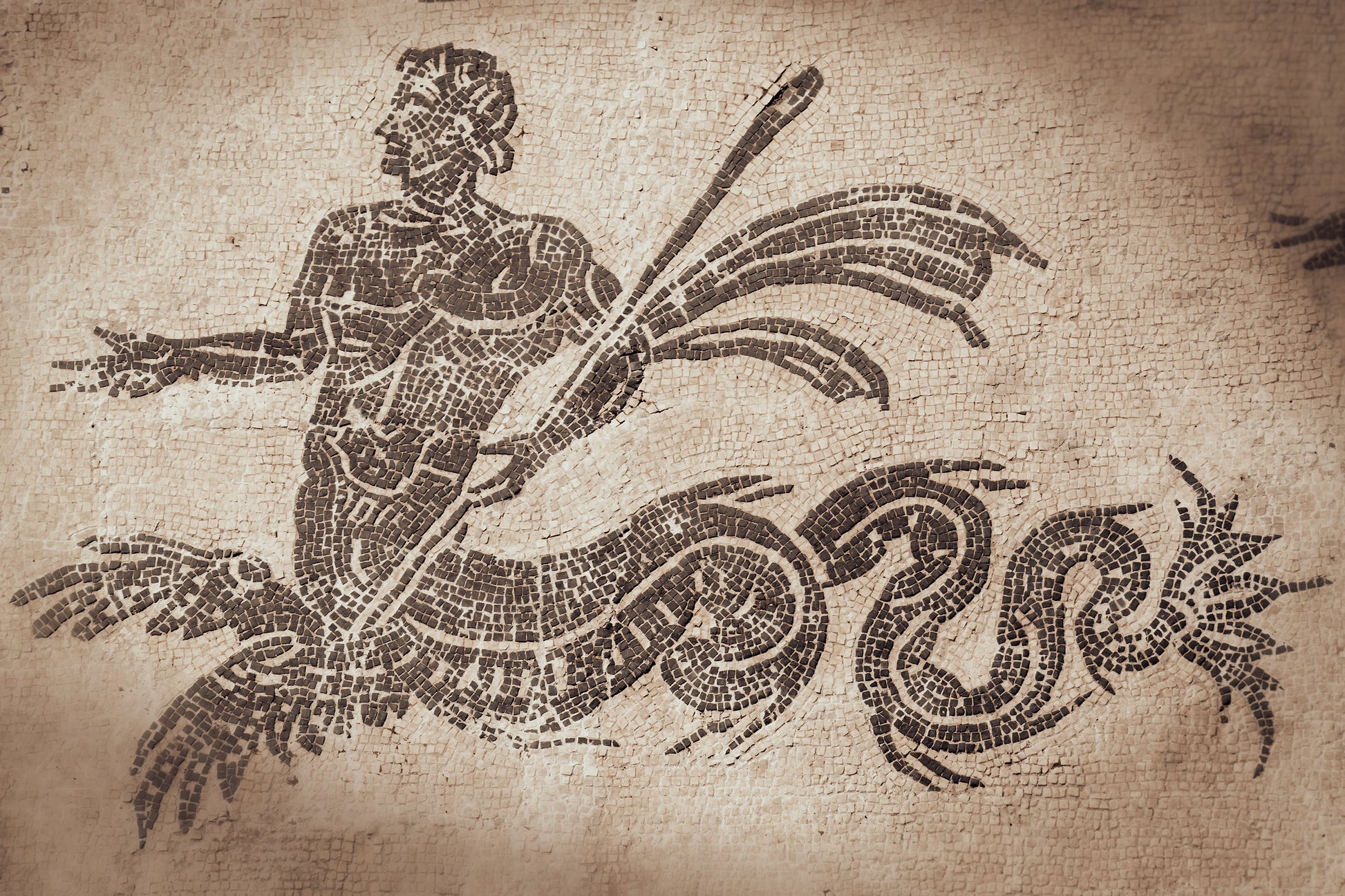 Description: Ancient mosaic of Triton in Ostia Antica, Rome.